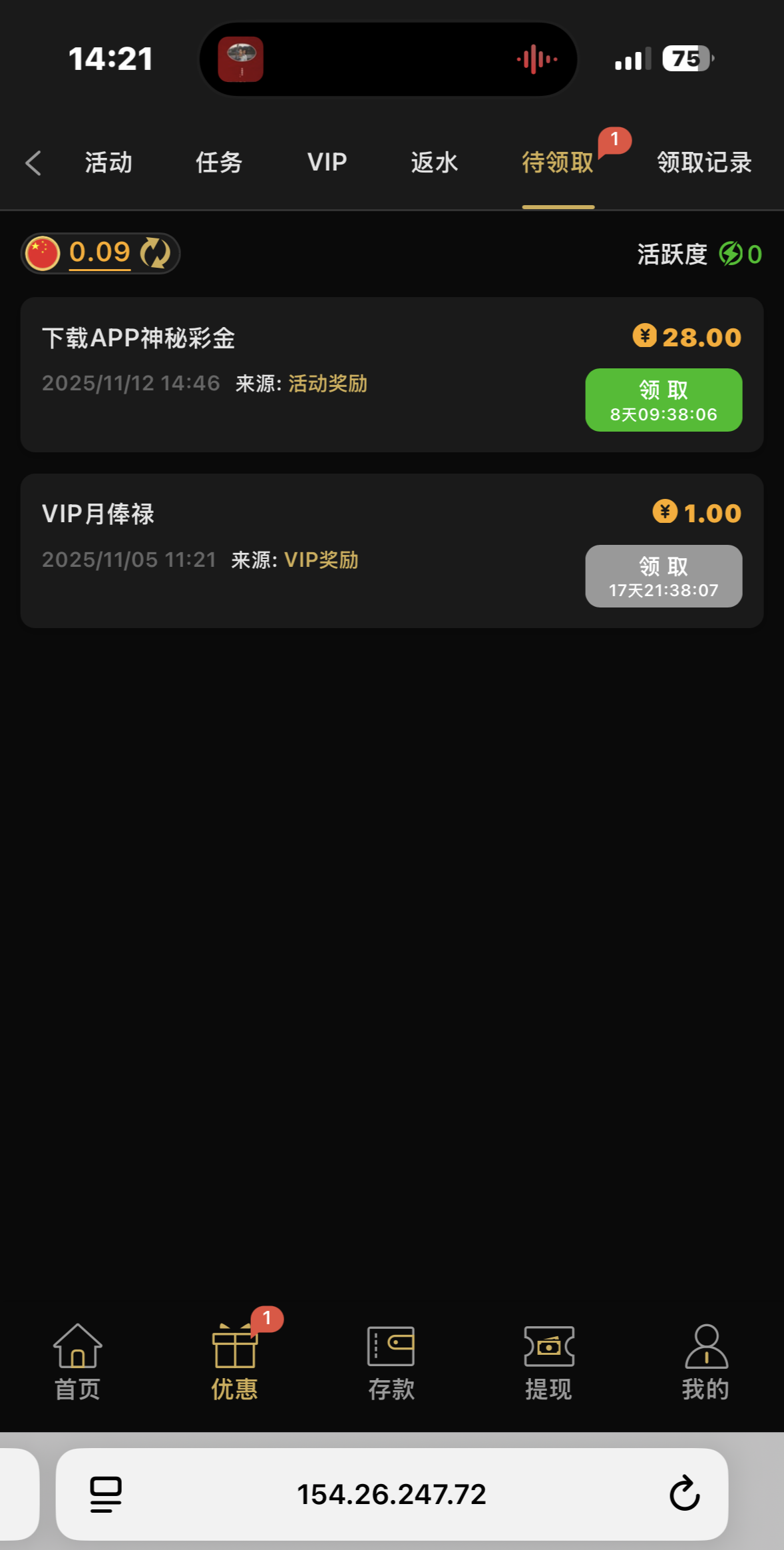 到账情况:自测(