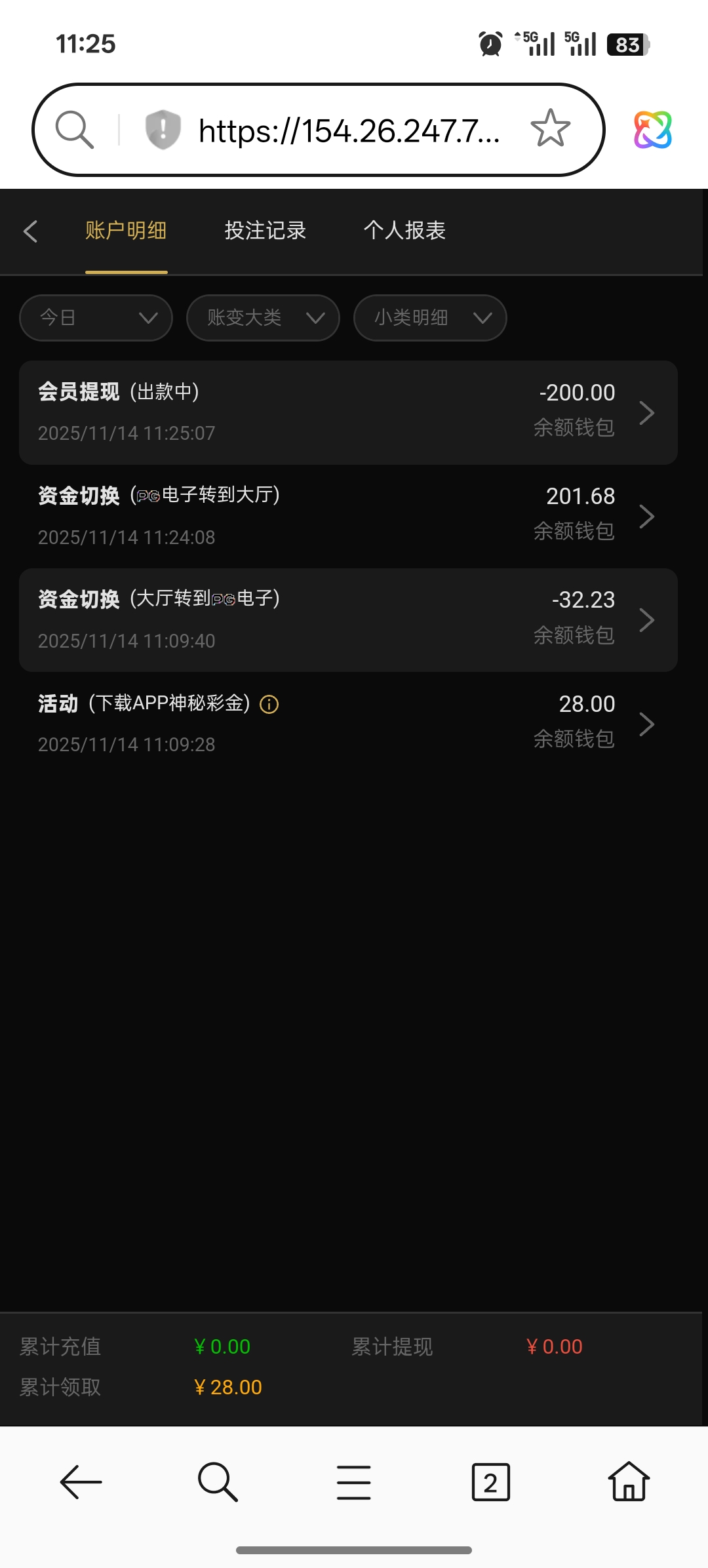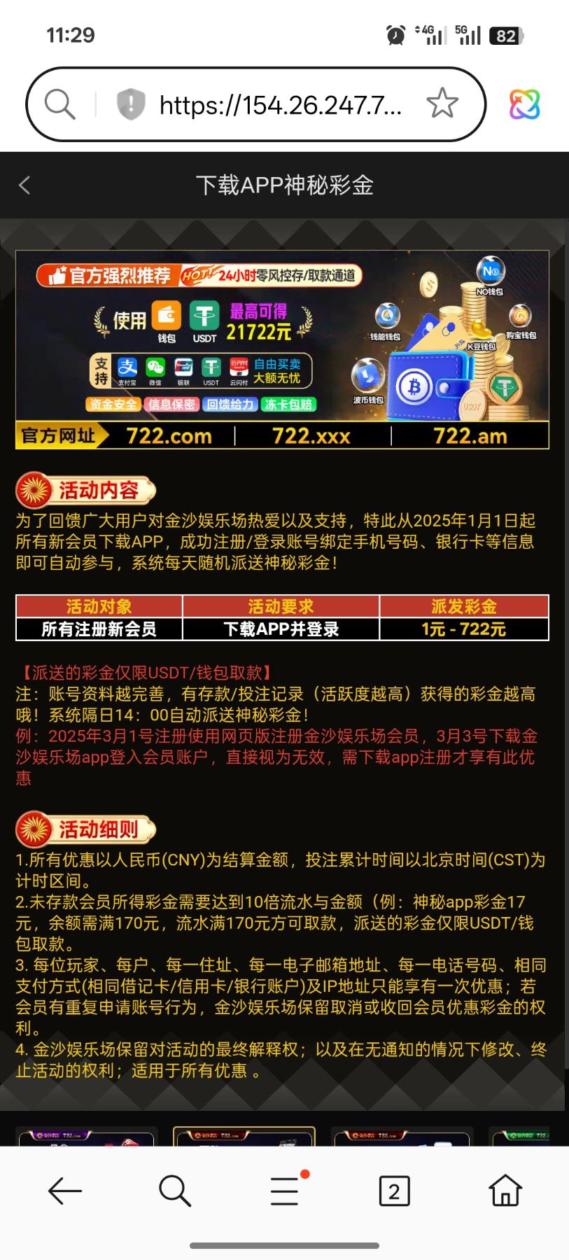 网址722.com 我接了一个电话说有彩金送我登录看送了28 我看了一下应该是那个下载app的彩金吧 我最近两个月没有充值过 平拉麻一拉了四五下爆了两百多倍提了200到账了
