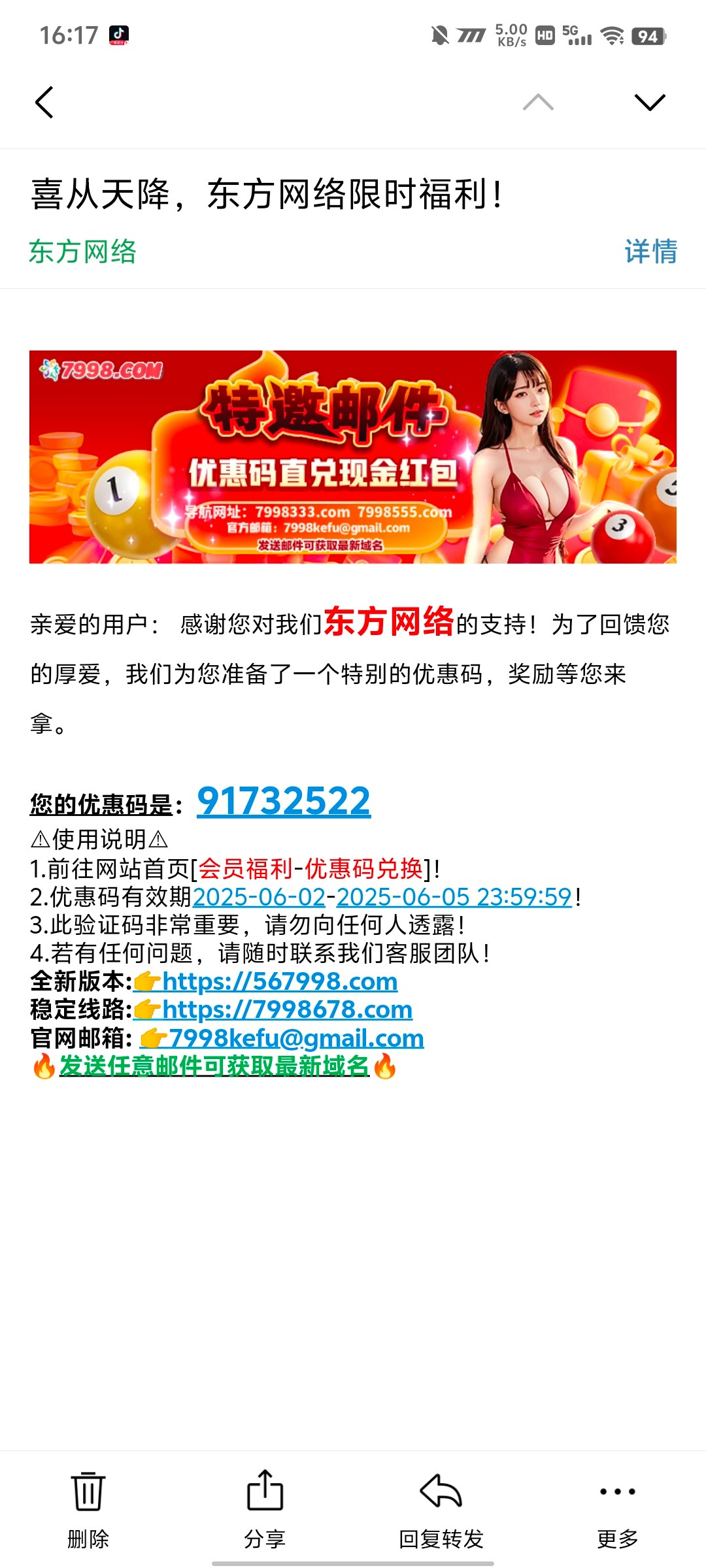 老哥们去邮箱看看有没有我刚领到就发出来了